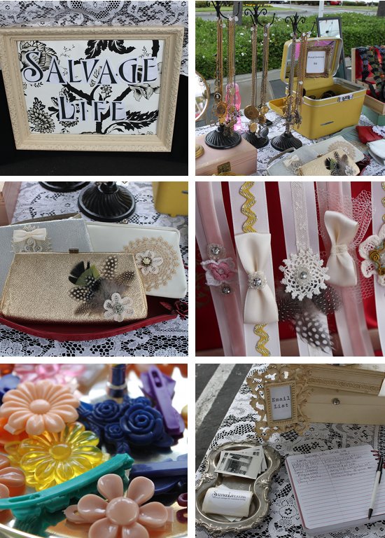 What a fantastic weekend! Thanks to all who came out to visit Salvage Life at the Handmade Brigade on Saturday! We had a blast and our booth was a huge success. It was great chatting with long time customers and making new ones. For those of you who didn't make it, here's a little picture collage of some of our items for you to enjoy. I will post some pics of my favorite products from other sellers a bit later. I hope you are having a great day!